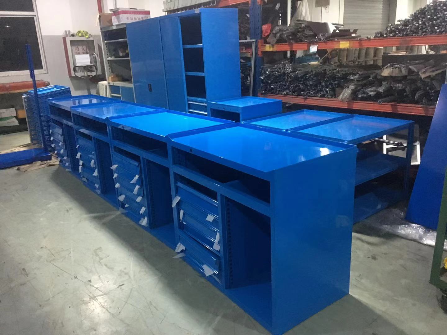 工具柜的介紹 工具柜適用于工具、刀具、零部件在生產(chǎn)現(xiàn)場(chǎng)中的定置管理,使您的物品存取工作真正做到準(zhǔn)時(shí)、準(zhǔn)確、高效、低耗。 平時(shí)見(jiàn)到的工具柜,通常用來(lái)放置工具,只是將絕緣工具規(guī)整而已,現(xiàn)在推出了除了普通工具柜的放置功能,更增加了除濕和高溫預(yù)警功能,是一款實(shí)用性相當(dāng)高的工具柜。 工具柜的特點(diǎn): 1.高強(qiáng)度的結(jié)構(gòu)設(shè)計(jì)和特殊的噴粉表面處理工藝,能適應(yīng)工廠(chǎng)較復(fù)雜的工作環(huán)境。 2.裝有軸承的導(dǎo)軌,保證單個(gè)抽屜承受額定載荷時(shí)亦能輕松順暢開(kāi)合。 3.抽屜內(nèi)自由調(diào)節(jié)的隔板,能使您隨意分隔儲(chǔ)物空間。 4.全寬型鋁合金抽屜把手及可換的標(biāo)簽,美觀(guān),方便,實(shí)用。 5.先進(jìn)的抽屜安全扣設(shè)計(jì),保證抽屜在關(guān)閉后不會(huì)意外滑出。 6.配有安全擋板設(shè)計(jì),保證抽屜打開(kāi)后百分之百不會(huì)掉落。 7.采用具有國(guó)際先進(jìn)水平的鎖具, 鎖具先進(jìn),只用一把鑰匙就能鎖上的抽屜,保證物品安全。 8.可自由選擇配置不同高度的抽屜,充分滿(mǎn)足客戶(hù)的需求。 9.柜體底部墊腳,保護(hù)柜體在放置或移動(dòng)時(shí)不受損壞,方便用叉車(chē)搬運(yùn)。 10.多種表面顏色,滿(mǎn)足用戶(hù)整體布置的要求。 11.根據(jù)需要可自由選擇配置不同高度的抽屜,充分滿(mǎn)足生產(chǎn)現(xiàn)場(chǎng)的需要。 12.可以配置帶有防油膠墊的頂框,保護(hù)放置物品不受損害以及防止物品滑落。